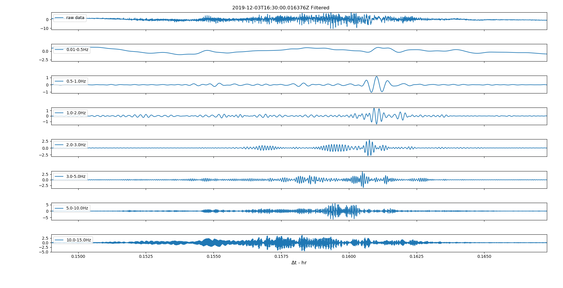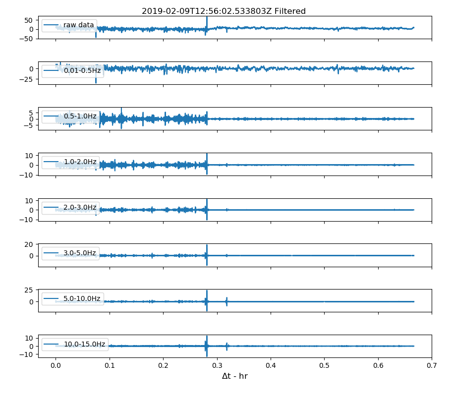 Both detectors picked up strong signals in the range 0.01-1.0 Hz between 1 and about 3 am. Quietening down for the rest of the night. Not sure if I know why however satisfying to see that they both record similar traces