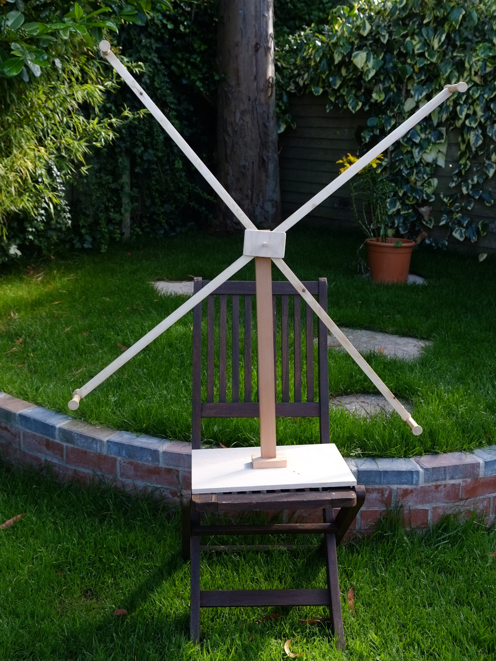 The boys have started to wind the new VLF antenna for the SIDSpot project. This is an inductively coupled, double loop to recieve the magnetic component of VLF submarine transmissions. The secondary loop of 22 turns has been wound first onto a frame 90cm on each side, this connects to the tuner/amplifier. This loop inductively couples to the primary loop of around 300 turns which will be tuned to resonat at the desired frequency. 1.1 km of wire to wind tomorrow.
