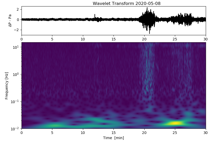 We've been exploring techniques to 'visualise' infrasound signals. Sifting frequencies up to the audible range is an interesting alternative to graphical presentation. From Nathan's detection of the Tonga eruption (strictly Hunga Tonga–Hunga Ha'apai). This video is the primary pulse from Tonga sped up 500x. Thanks to https://sonify.readthedocs.io/en/latest/index.html for the base code.